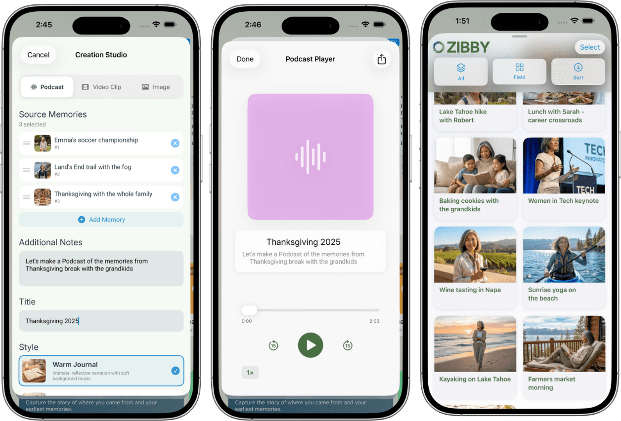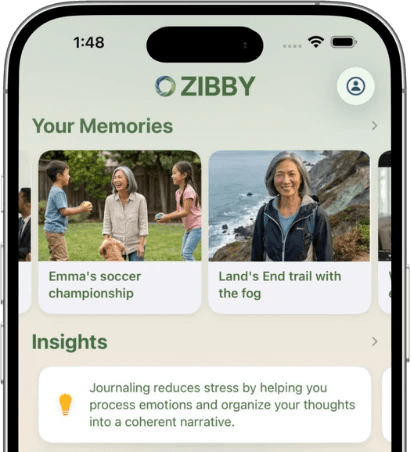 Personalized prompts, memory insights, and smart suggestions that evolve with your habits and goals. Zibby finds what excites you, then builds around it.